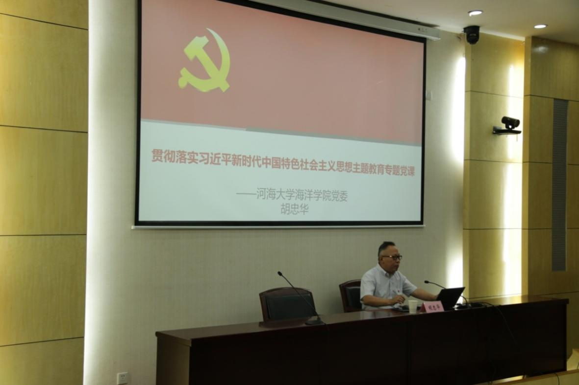 6月9日下午,海洋学院党委书记胡忠华为师生讲授主题教育专题党课。学院领导班子和本科生、研究生辅导员及学生党员共100余人参加。